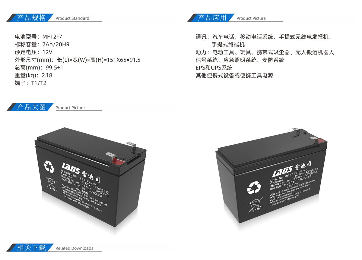 雷迪司MF12-7 12V 7AH閥控密封式鉛酸免維護蓄電池