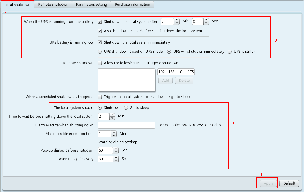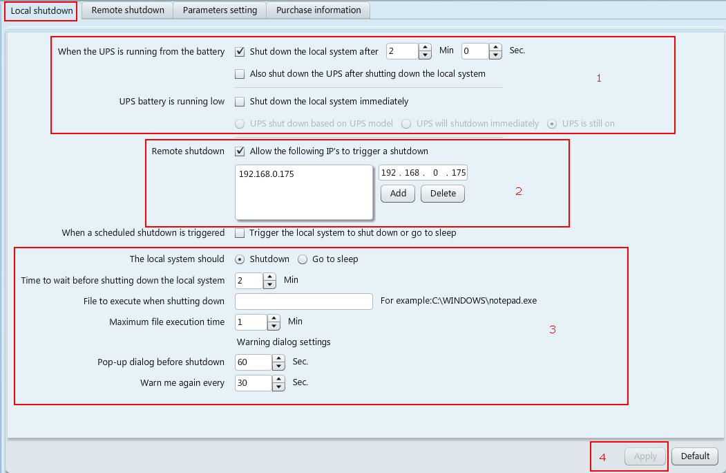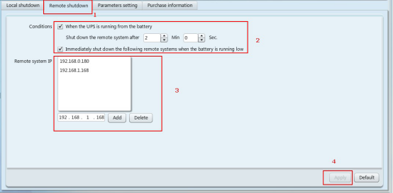 5. 交流電源關閉后,關機命令從192.168.0.175發送到192.168.0.180和192.168.1.168,然后自動關機,最后UPS關機。