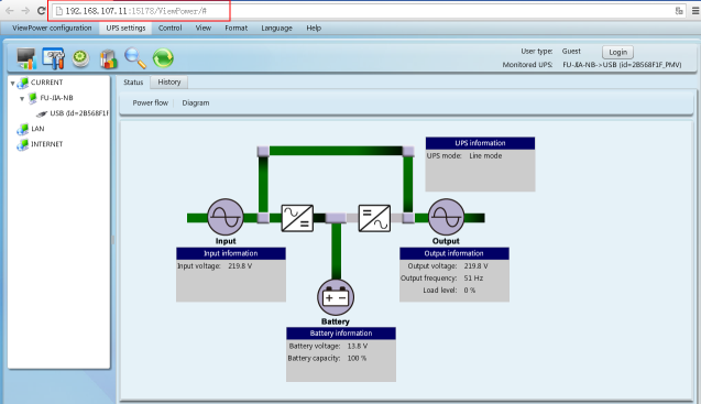 1、電腦IP:192.168.107.11,安裝ViewPower文本或標(biāo)準(zhǔn)版本運行。打開IE或fireFox,然后從用戶電腦(IP 192.168.104.11)輸入網(wǎng)絡(luò)地址遠(yuǎn)程監(jiān)視器。例如,輸入“http://192.168.107.11:15178/ViewPower/”。、